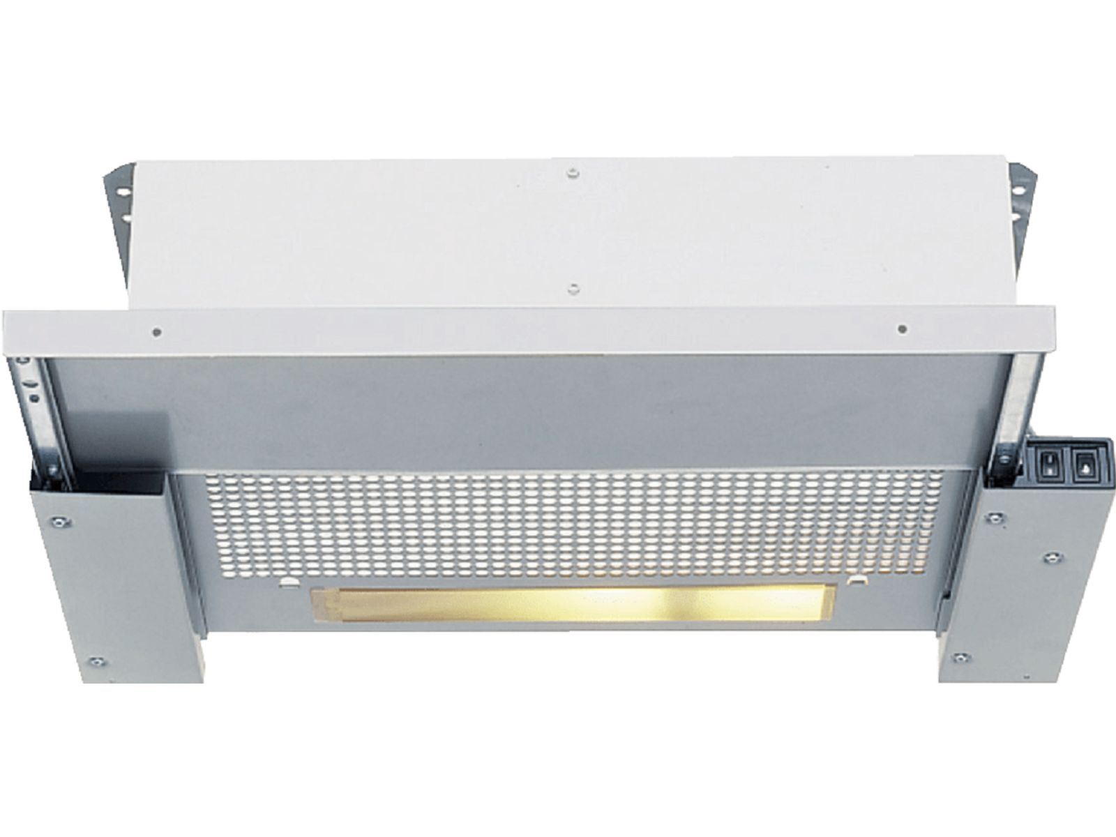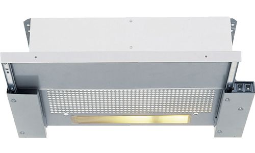 Hotte téléscopique en argent métallique, encastrable dans une armoire suspendue de 60 cm.