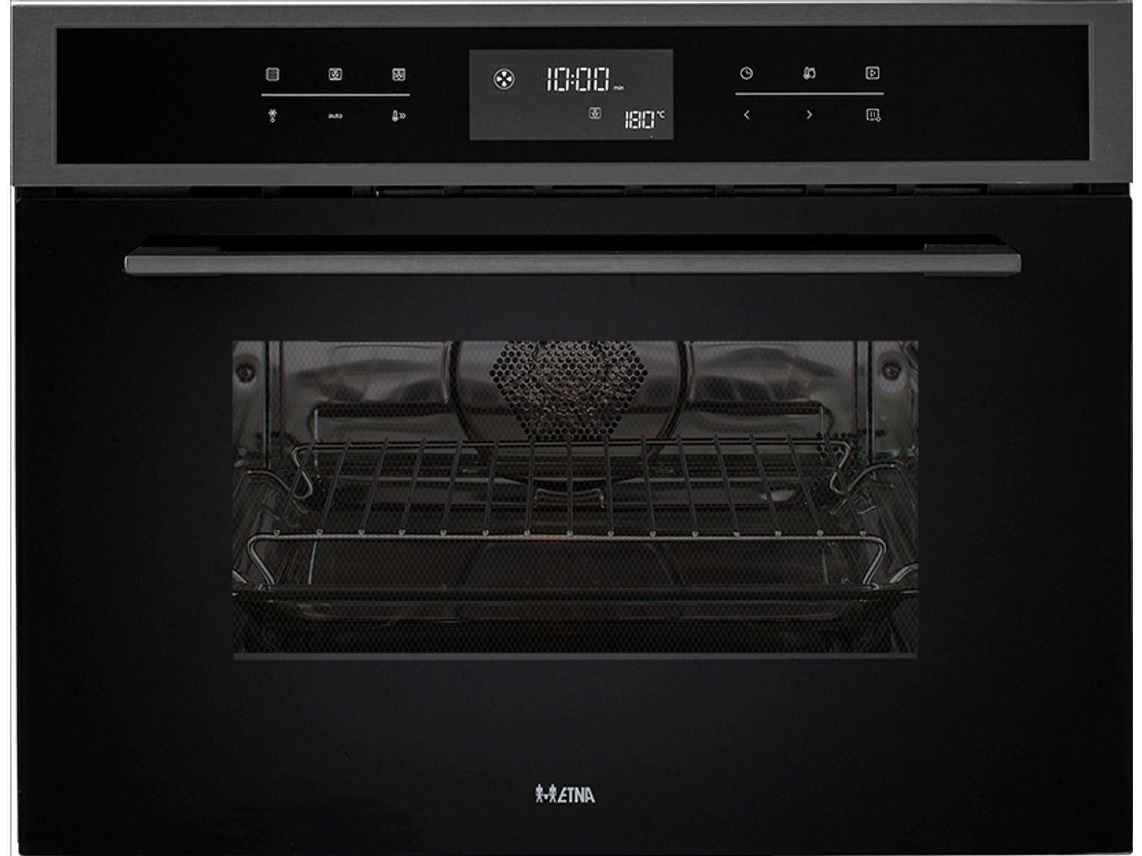 L'ETNA CM644Ti est non seulement spacieuse, mais aussi très puissante et dispose d'une fonction air chaud turbo, d'une chaleur inférieure et supérieure, d'un gril et bien sûr de diverses fonctions micro-ondes. Avec 13 programmes automatiques, 5 réglages micro-ondes avec démarrage rapide, 2 programmes de décongélation et 4 réglages combinés, l'appareil est entièrement équipé. Les hauteurs de grille sont uniques à ce four à micro-ondes combiné. Avec la plaque de cuisson en verre et la grille d'insertion incluses, vous avez de la place pour des plats à four plus grands et vous pouvez même cuire sur plusieurs niveaux !