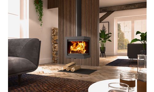 Le Bora Corner, Fixed est suspendu au plafond (en matériau inflammable), ce qui offre de nombreuses possibilités de placement dans la maison. La foyer peut être suspendue dans n'importe quelle position pour que vous puissiez profiter au maximum de ce beau foyer au bois.