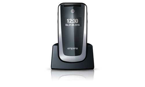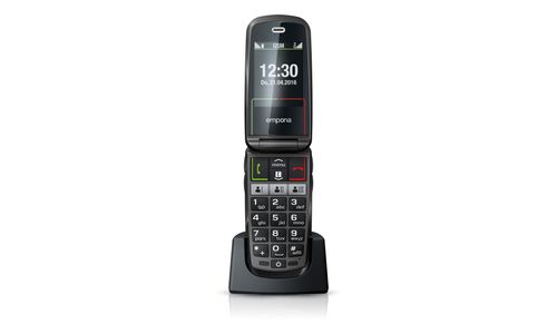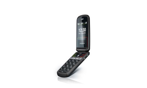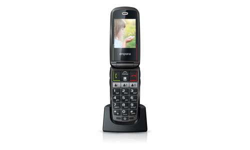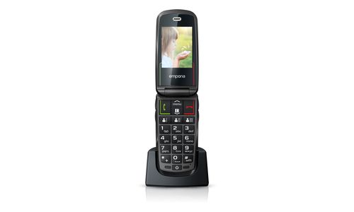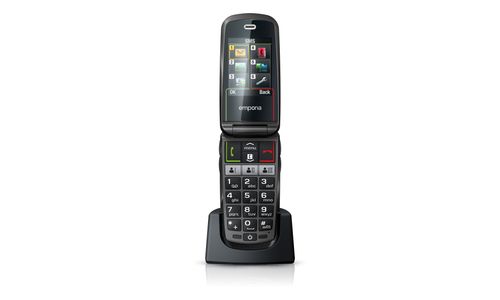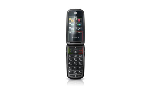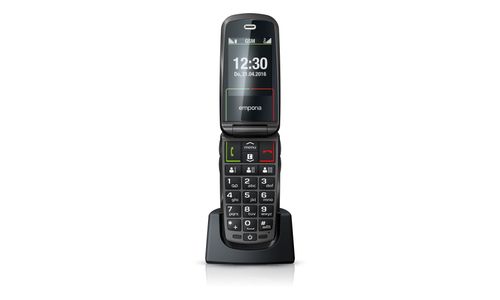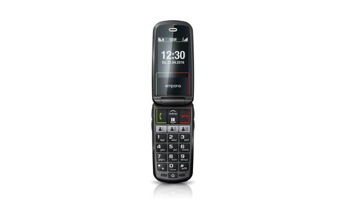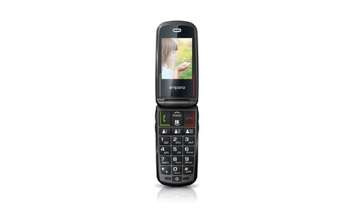 Emporia SELECT. Format: Clapet. Capacité de la carte SIM: SIM unique. Taille de l'écran: 6,1 cm (2.4"), Résolution de l'écran: 240 x 320 pixels, Écran externe. Résolution de la caméra arrière (numerique): 2 MP. Bluetooth. Radio FM. Technologie batterie: Lithium-Ion (Li-Ion), Capacité de la batterie: 1100 mAh, Délai d'attente (2G): 280 h. Poids: 84 g. Couleur du produit: Noir