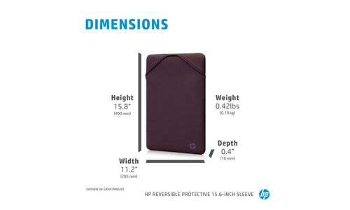 HP Housse de protection réversible pour ordinateur portable 15,6 pouces (doré). Type d'étui: Housse, Taille maximale de l’écran: 39,6 cm (15.6"). Poids: 190 g. Coloration de surface: Uniforme