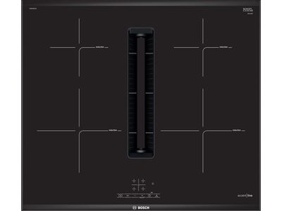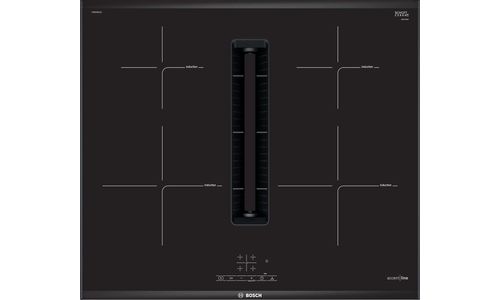 Table de cuisson Serie 4 Induction-ventilation intégrée 60 cm, PowerInduction, 4 zones, TouchSelect, Boost, Timer, tech.BLDC, 500/622m³/h, 68dB Top design B
