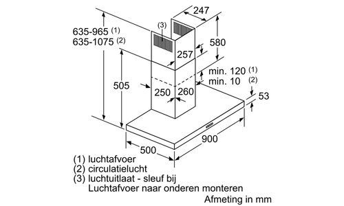 ++ Largeur: 90 cm ++ Puissance d'extraction (position la plus haute): 372 m³/h ++ Niveau sonore (Maximum): 70 dB(A) ++