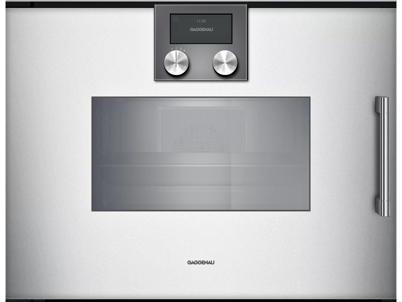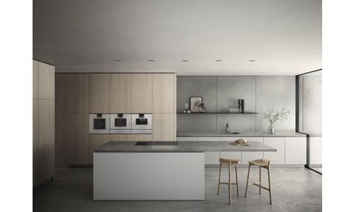Intégrés à fleur de meubles, les produits Gaggenau munis d'une poignée en inox vous permettent d'ouvrir la porte à 110 °C.