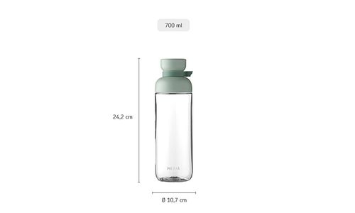 Mettez simplement la bouteille d'eau Mepal Vita remplie dans votre sac et vous êtes prêt à partir ! La bouteille d'eau étanche dispose de deux ouvertures : une pour boire confortablement et une deuxième (grande) ouverture pour nettoyer facilement la bouteille et/ou ajouter votre fruit ou herbe préféré. La boucle pratique permet de le transporter facilement avec vous. Mepal Vita peut être rempli et réutilisé encore et encore ; l'alternative aux bouteilles en plastique jetables.