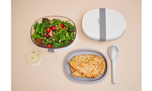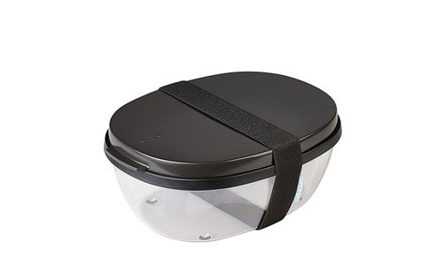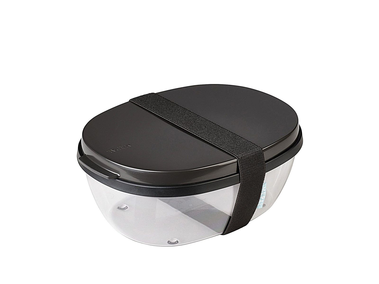 Boîte à salade Ellipse de couleur noir nordique. Cette boîte à salade noire Ellipse de Mepal est assez grande pour une salade (repas). La boîte transparente offre suffisamment d'espace pour mélanger la salade au moment de la manger. Le compartiment offre de la place pour le pain ou les couverts et les vinaigrettes ou les pignons de pin peuvent être emportés dans la petite mini-boîte. La boîte à salade Ellipse résiste aux coups et passe au lave-vaisselle (sans élastique). Profitez d'un déjeuner savoureux, durable et sain partout !