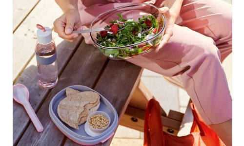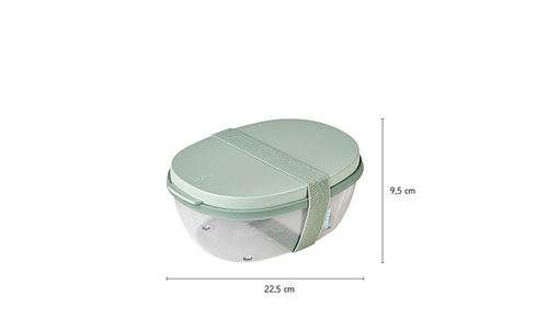 Boîte à salade Ellipse de couleur Mauve vif. Cette boîte à salade rose Ellipse de Mepal est assez grande pour une salade (de repas). La boîte transparente offre suffisamment d'espace pour mélanger la salade au moment de la manger. Le compartiment offre de la place pour le pain ou les couverts et les vinaigrettes ou les pignons de pin peuvent être emportés dans la petite mini-boîte. La boîte à salade Ellipse résiste aux coups et passe au lave-vaisselle (sans élastique). Profitez d'un déjeuner savoureux, durable et sain partout !