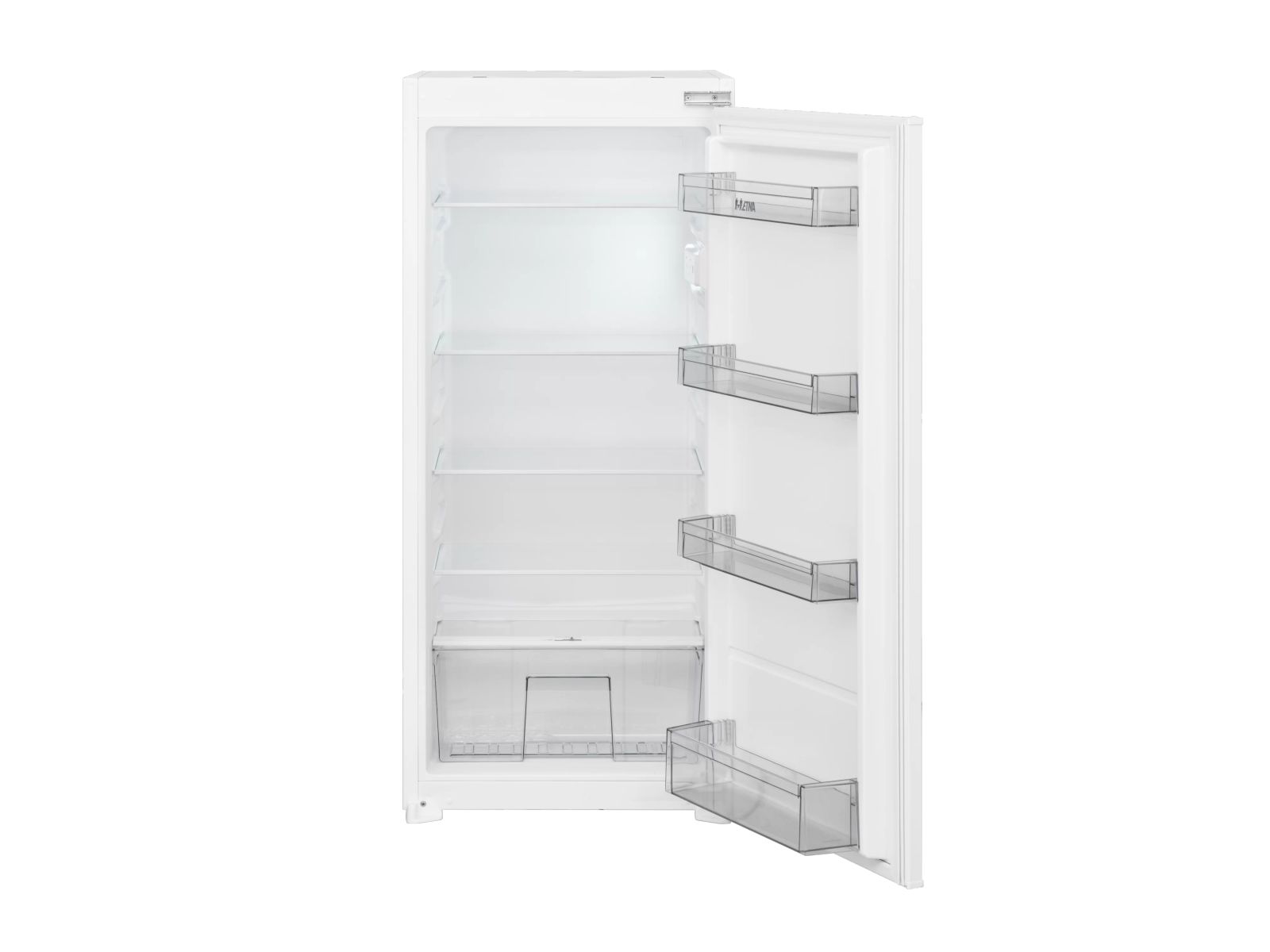 Le réfrigérateur encastrable KKS5122 d'ETNA est un complément fiable à votre nouvelle cuisine et vous offre beaucoup d'espace de refroidissement. Le modèle a une classe énergétique E et un niveau sonore de 35 dB(A), ce qui le rend remarquablement silencieux. Le compartiment de refroidissement de ce réfrigérateur a une capacité nette de 193 litres et offre beaucoup d'espace de rangement. Par exemple, le KKS5122 dispose de cinq étagères en verre avec rebord anti-goutte et d'un bac à légumes transparent avec contrôle de l'humidité. Le réfrigérateur encastrable mesure 122 cm de hauteur et est intégré avec le système de porte coulissante couramment utilisé. De plus, le sens d'ouverture de la porte peut être déterminé avant l'installation, de sorte qu'elle correspond toujours à la conception de la cuisine. Le KKS5122 est équipé d'un thermostat électronique avec indicateur LED qui assure une température stable dans le réfrigérateur. Grâce à la fonction SuperCool, vous pouvez rapidement amener de nouveaux produits à la bonne température.