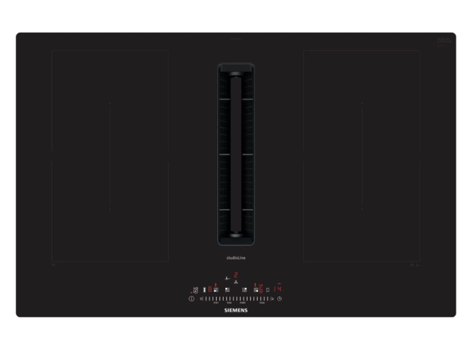 Inductiekookplaat met een volledig geïntegreerde vlakke luchtinlaat.Voor alles dat iets meer ruimte kan gebruiken