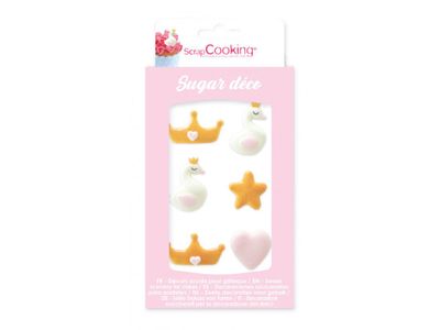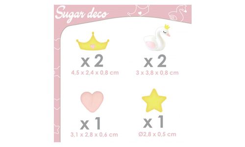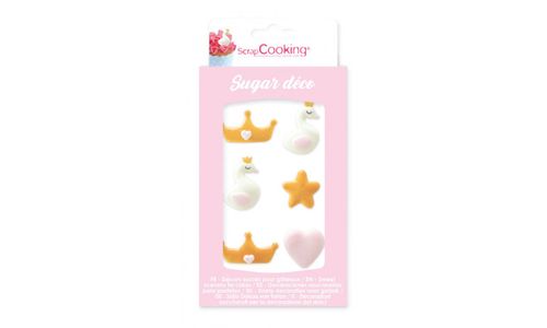 Doos met 6 decoratieve suikers "Princess" om uw taarten, cupcakes te verfraaien.