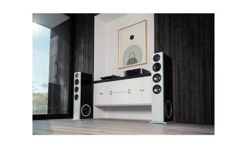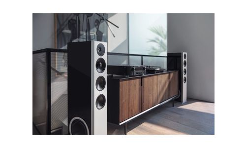 De D17 zuilluidspreker uit de Demand-serie is voorzien van een exclusieve 3-weg driverconfiguratie met een 1-inch aluminium dome tweeter, een BDSS™ midrange woofer, een dubbele 6,5-inch bas-driver van koolstofvezel aangevuld met een dubbele 10-inch passieve radiator aan de zijkant. Dit zorgt voor een volwaardig, ruimtevullend geluid. Het verfijnde en uitgebreide bipolaire ontwerp van de passieve radiator zorgt voor een verbeterde weergave van de lage frequenties zonder poortruis ondanks de kleinere behuizing.