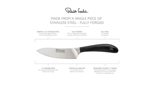 Het Signature chefmes van 12 cm van Robert Welch is een universeel keukenmes met een gebogen lemmet voor snij- en wipbewegingen.