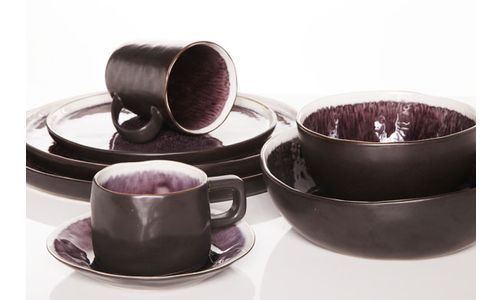 Laguna Viola met zijn geheel eigen kleur, textuur en vorm behoort tot de speciale serviezen van Cosy&Trendy. Het is een collectie in aardewerk met een modern golvend oosters design dat vanbinnen geglazuurd en aan de buitenkant subtiel blinkend is. Door het dieppaars oogt deze Laguna prestigieus en zakelijk, en biedt ze een uitzonderlijke presentatie van gerechten.