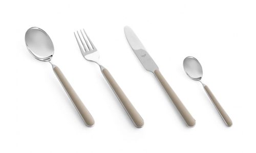 Wilt u wel eens iets anders op tafel? Voor een feestelijke gelegenheid, voor buiten, op vakantie, bij een picknick? Dan is Mepra Fantasia het antwoord! Een bestek dat u zelf kunt samenstellen. Alles in 1 kleur? Meerdere kleuren door elkaar? Mes, lepel en vork samen in de kleur van het logo van uw bedrijf of club? Alles is mogelijk in deze besteklijn. De kleur van dit bestek is tortelduif/beige.