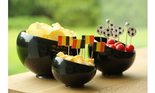 Full gloss lichte en donkere bowls uit de Orba collectie. De witte zijn vervaardigd uit New Bone China porselein, de zwarte uit aardewerk. Ze worden de laatste tijd overvloedig gebruikt voor een powerontbijt en lunchsalade, en zijn reeds een bekende voor een snackmix. Het ontwerp is gereduceerd tot de essentie, maar verheven door het voetje.