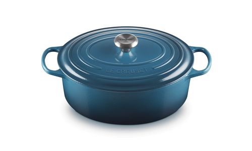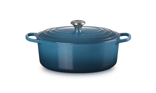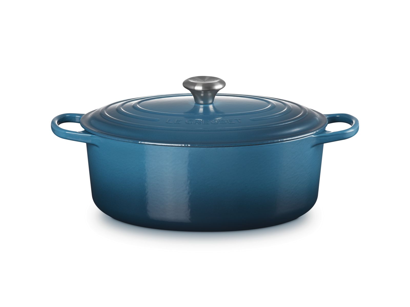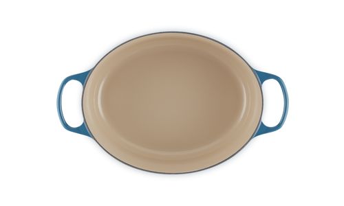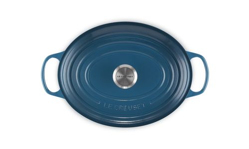 Dit ovale exemplaar is net zo veelzijdig als onze klassieke, ronde Stoofpan. De pan is groot genoeg om een hele lamsbout te braden en smal genoeg om ruimte over te laten in de oven voor extra bereidingen. Wat u ook serveert, dit belangrijkste hulpmiddel van de kok helpt u bij het creëren van verbluffende en smaakvolle gerechten.