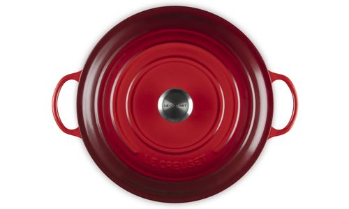Met onze hittebestendige knop (tot 260°C) heeft u een betere grip, ook als u ovenhandschoenen gebruikt om het deksel op te tillen.