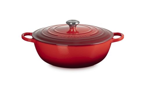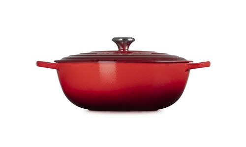 Familierecepten worden van generatie op generatie doorgegeven, net als ons gietijzeren pannen. En deze familiepan is geen uitzondering. Hij is praktisch, stijlvol en gaat lang mee. Afgeronde zijwanden zorgen voor gemakkelijk roeren en een moeiteloze bereiding van eenpansgerechten. Bourguignon? Bouillabaisse? Wij zijn van de partij.