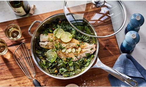 Kies uw kookplaat: Ons Signature roestvrijstalen kookgerei is geschikt voor alle kookplaten en conventionele ovens en kan gebruikt worden bij temperaturen tot 260°C. Niet geschikt voor magnetrons.