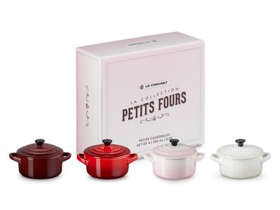 Deze set van vier klassieke kleine stoofpannen zal ongetwijfeld een glimlach op uw gezicht toveren. Deze schattige pannen zijn gemaakt van premium aardewerk van Le Creuset en zijn geschikt voor de vaatwasser, oven, magnetron en vriezer. Gebruik ze voor het serveren van snacks, hapjes, desserts en voorgerechten.