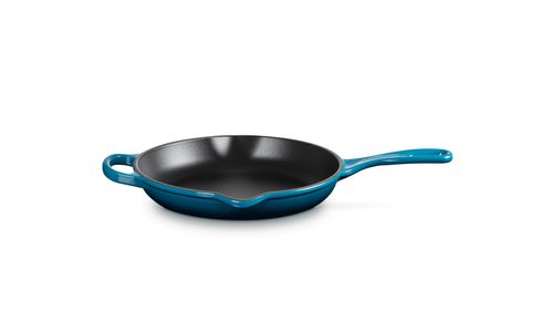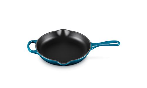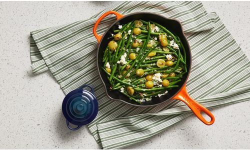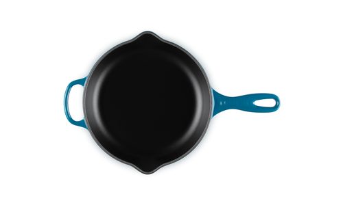 Zowel chef-koks als thuiskoks zweren bij onze karakteristieke skillet. Zijn matzwart geëmailleerde binnenkant brengt karamelliseren naar heerlijke ongekende hoogten. Deze keukenheld kan worden gebruikt op de kookplaat, onder de grill of in de oven, waardoor het een veelzijdig product is om mee te braden en bruin en krokant te bakken.