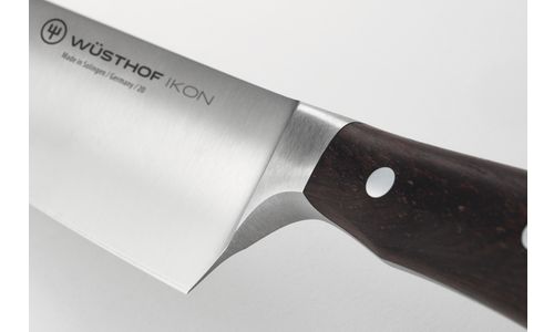 De allrounder: voor het fijn maken, hakken of snijden van vlees, vis, fruit en groenten. Dit koksmes is een actieve hulp bij veel keukentaken, maakt het bereiden van gerechten tot een plezier en is onderdeel van de basisuitrusting van elke professionele en hobbykok. De halfkrop, de verbinding van handvat en lemmet, geeft minder gewicht aan het mes, waardoor het gemakkelijker te hanteren is. Daardoor kan het hele lemmet ook gemakkelijker worden geslepen.