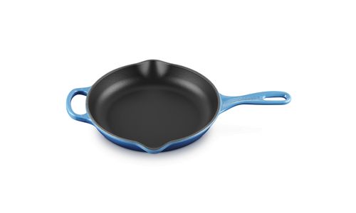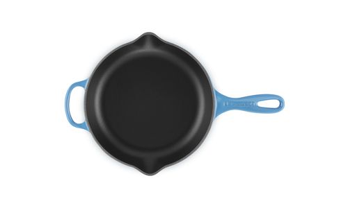 Zowel chef-koks als thuiskoks zweren bij onze karakteristieke skillet. Zijn matzwart geëmailleerde binnenkant brengt karamelliseren naar heerlijke ongekende hoogten. Deze keukenheld kan worden gebruikt op de kookplaat, onder de grill of in de oven, waardoor het een veelzijdig product is om mee te braden en bruin en krokant te bakken.
