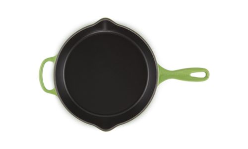 Deze pan is gemaakt van ons legendarische gietijzer, dus hij kan in de oven én op het fornuis worden gebruikt. Het is een echt basisproduct in de keuken en heeft een ergonomisch handvat waardoor hij gemakkelijk te verplaatsen is. En hij is voorzien van twee schenktuitjes, om zonder knoeien te kunnen serveren. Klaar om te serveren? Zet hem dan zo op tafel. U heeft geen extra schaal nodig.