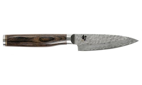 De serie Shun Premier Tim Mälzer is speciaal afgestemd op de eisen en behoeften van de professionele kok. In deze Premium serie worden de hoogwaardige materiaaleigenschappen van de bekende Shun Classic serie met een geheel nieuw, indrukwekkend totaalbeeld samengebracht. Het lemmet is verdeeld in drie verschillende texturen: van de rug van het lemmet tot aan het midden wordt handmatig een hamerslag, bekend als Tsuchime, aangebracht. Gevolgd door de voor Shun kenmerkende zacht gematteerde Damastlagen. Het lemmet wordt afgerond met de hoogglans gepolijste precisiesnede. Dit complexe en bewerkelijke lemmet wordt gecombineerd met een heft van fraai getekend bruin walnotenhout. De bijzonder harde en slijtvaste kern van het lemmet zorgt voor een extreme scherpte en langdurige snijprestaties.